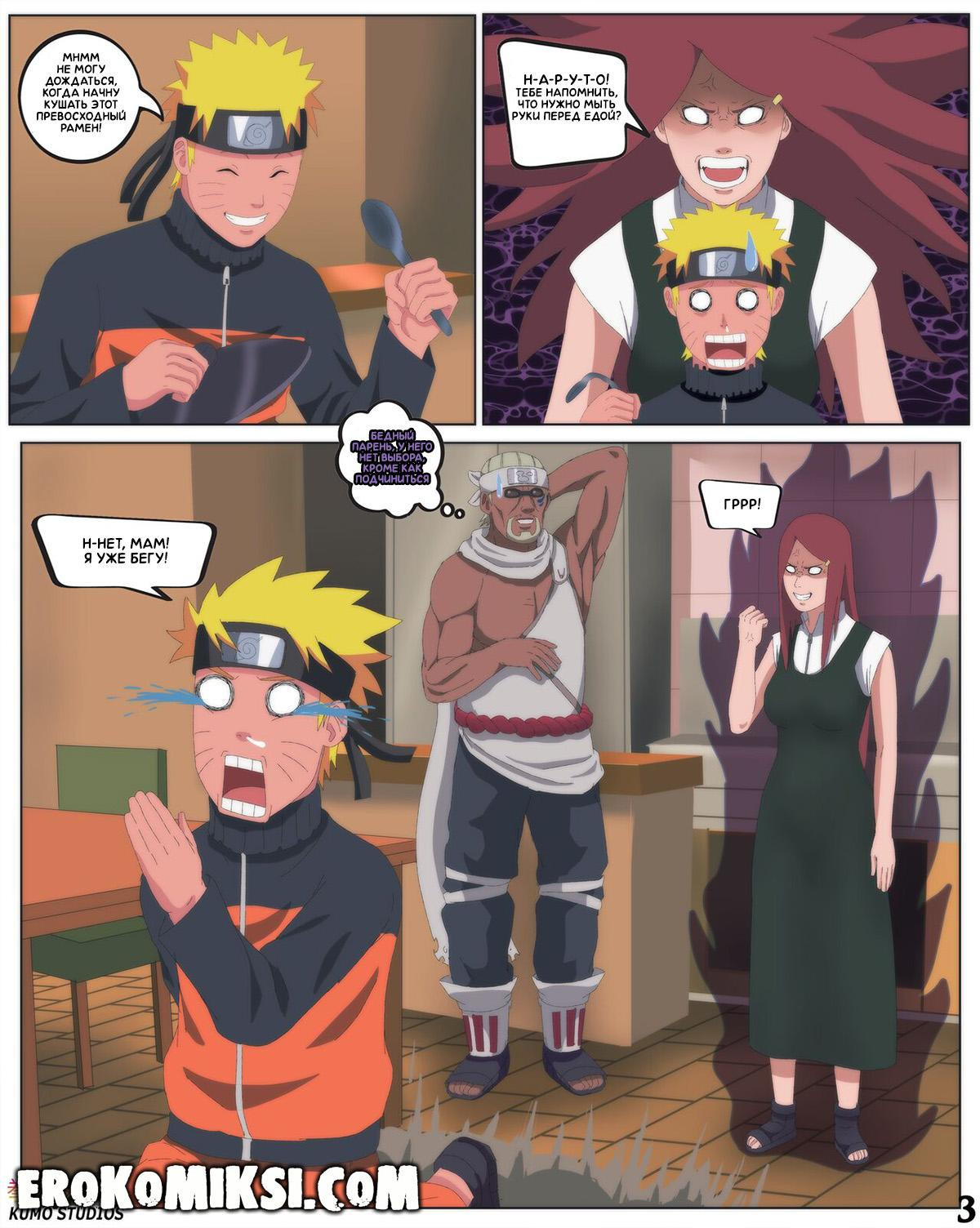 Порно комикс Наруто. Кушина Узумаки – Горячая Мама Наруто. После тренировки, Наруто пригласил Би-Саму на обед, чему Би был очень рад, так как это была возможность увидеть маму Наруто, красотку Кушину. Во время обеда, Би решил сымитировать ситуацию, чтобы спровадить Наруто из дома и остаться с Кушиной наедине и завладеть ей…
